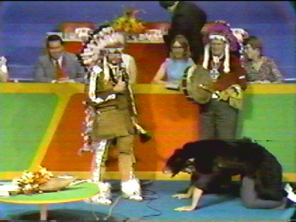 One of the commitments made during this Praise-A-Thon was if a certain financial goal was met Ray would perform an Indian dance called Dancing Bear. In lieu of a real bear a person covered with a bear skin was used.