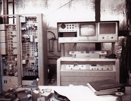 This is the “business end” of the PC-70 camera. Two camera control units (CCU) are shown. The right CCU is undergoing some maintenance as can be seen with one of the circuit modules on an extender card. The operator sets up the camera and ensure perfect pictures using the myriad of knobs seen in the photo.