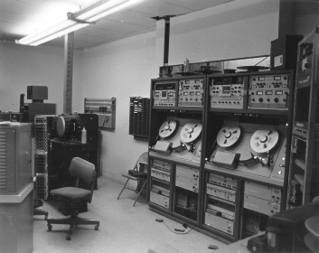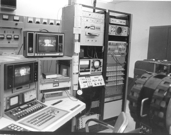 This picture was taken in the mid 1970’s. Note the Videotape recorders on the right. These are obviously not the ones that were there during the 1998 visit. It is unknown as to whatever happened to these tape machines. A portion of the film island is shown in the distance and where Joe Snelson is standing in the picture on the left. The Videotape recorders present during the 1998 visit were against the far wall.