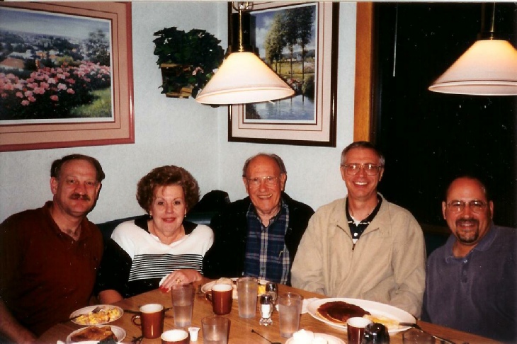 At the conclusion of the visit the crew went down the mountain and stopped into a restaurant for breakfast and fellowship. A good time was had by all. It is estimated that this picture was taken around 11 PM. Seated from left to right: Al Davis, Linda Schoch-Davis, Bernie Marston, Joe Snelson and Jon Palmer.